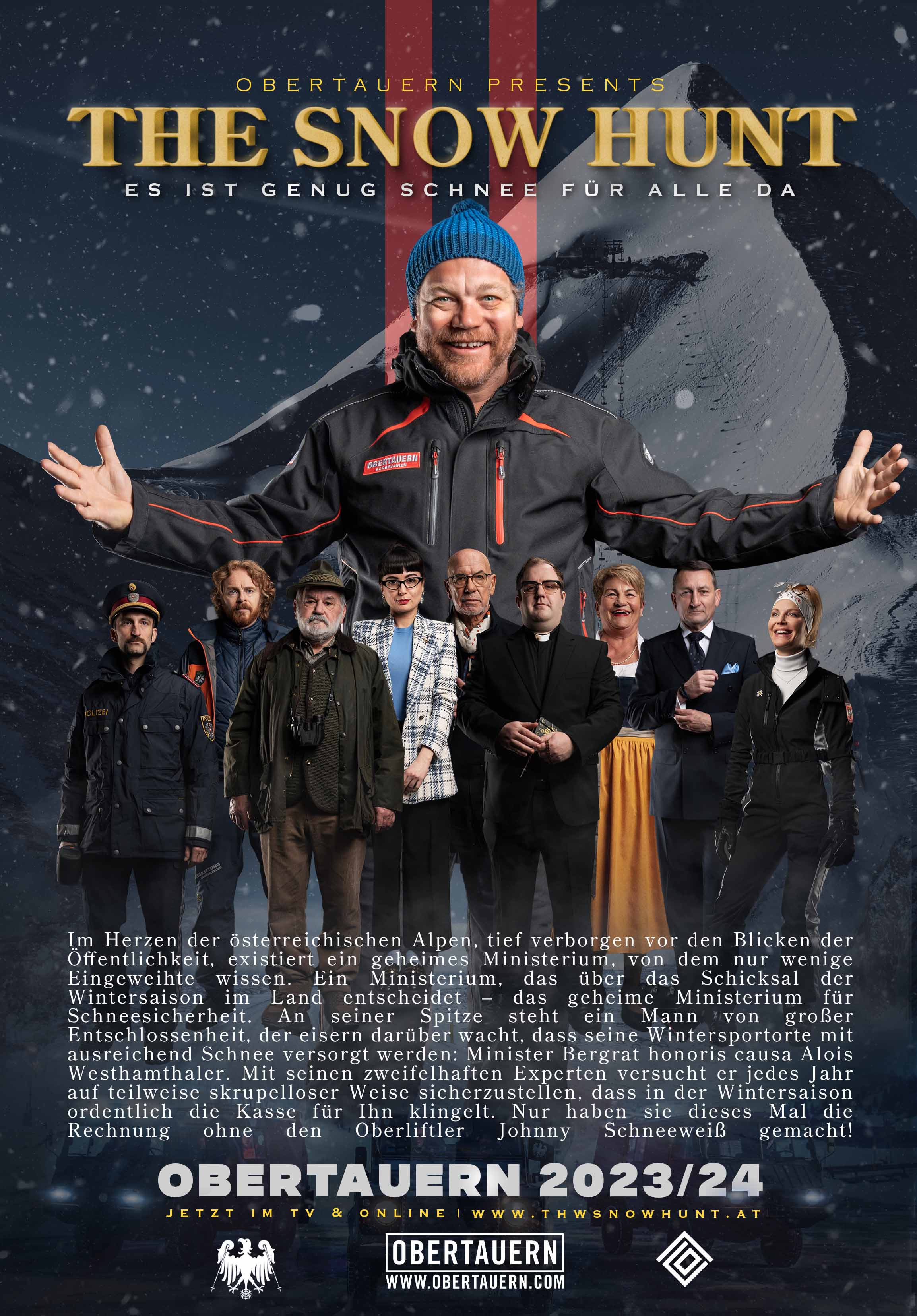Für die Winterkampagne 2023/24 des TVB Obertauern durften wir mehr, als nur einen weiteren Winterspot drehen. Kino- und Filmliebhaber:innen lieben Spannung, Action, Abenteuer. Sie wollen mitgerissen werden. Mit dieser Zielgruppe im Blick, setzten wir einen eigenen Actionfilm um, der nicht nur das Skigebiet Obertauern bewirbt, sondern ganz subtil auch noch Österreichs schönste Stereotype aufs Korn nimmt. Das Ministerium für Schneesicherheit Österreich hat nur noch eines im Sinn – Obertauern den heiß begehrten Schnee zu stehlen.